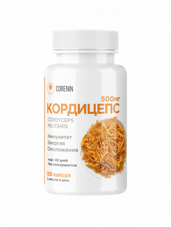 Кордицепс (500 мг) от бренда Corenin — это высококачественная добавка, содержащая экстракт гриба кордицепса, который известен своими полезными свойствами. В каждой упаковке содержится 120 капсул, что обеспечивает длительный курс приема.