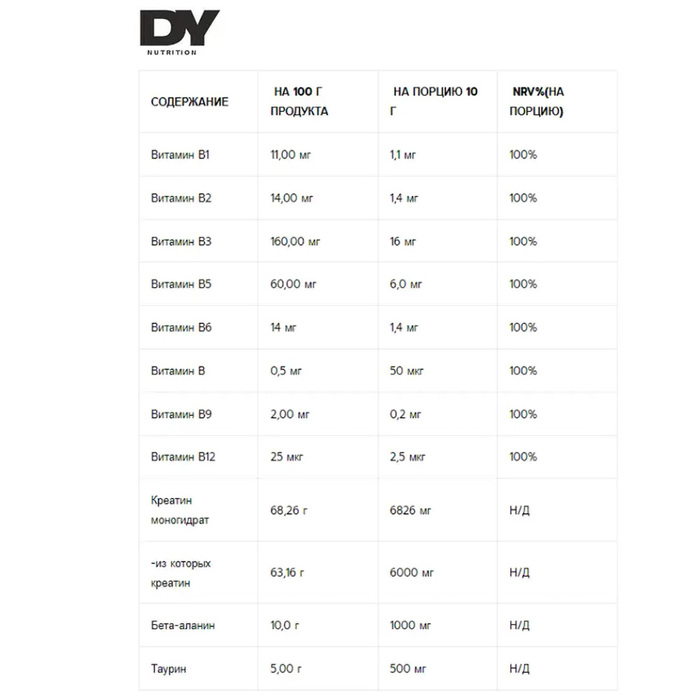 - Чистота и качество: Продукт изготовлен из высококачественного креатина, без добавления искусственных красителей и консервантов.