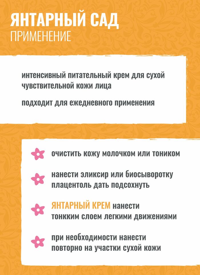 Крем для лица Янтарный сад питательный увлажняющий восстанавливающий (50 мл) от бренда Плацентоль — это уход, который помогает поддерживать кожу в тонусе, дарит комфорт и способствует более здоровому и ухоженному виду.
