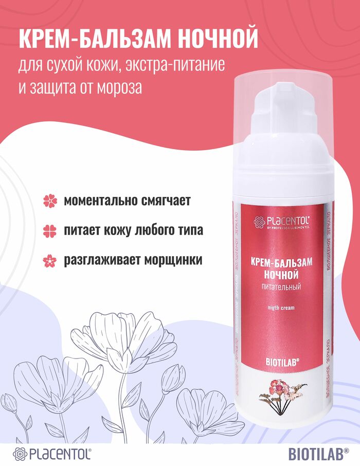 Плацентоль Крем-бальзам ночной для сухой кожи, 50 мл