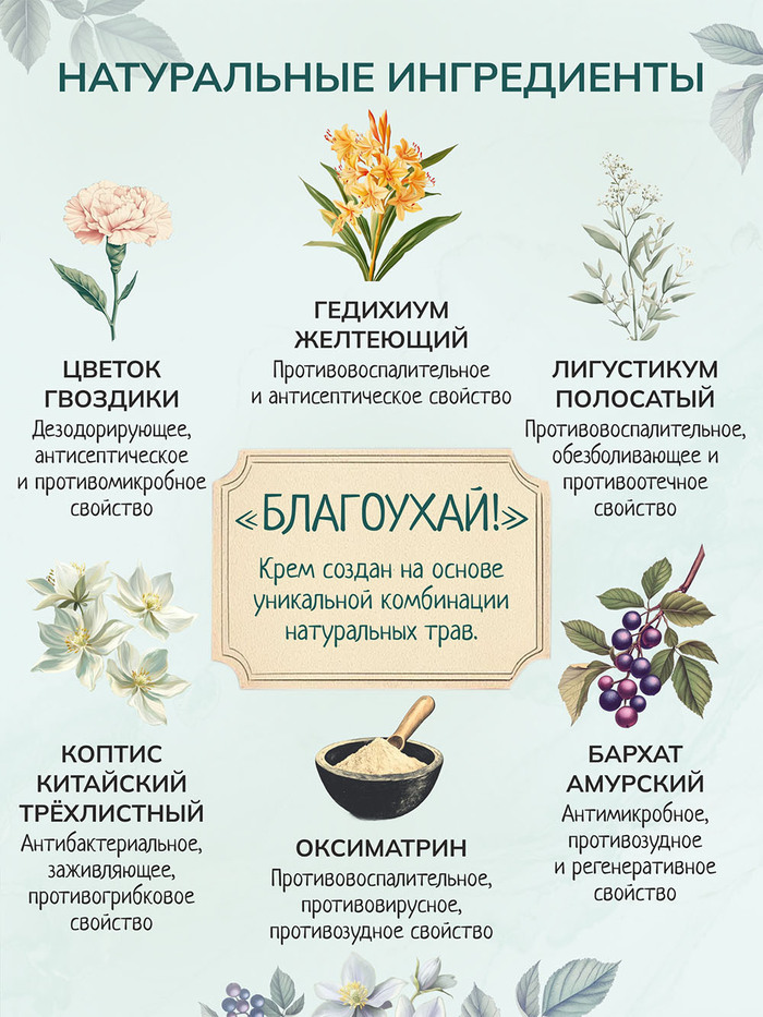 • Натуральный состав: Изготовлен на водной основе с использованием проверенных временем растительных экстрактов, без химических примесей и агрессивных отдушек.