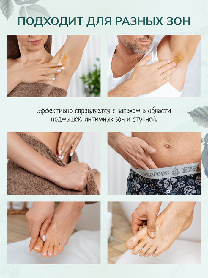- Универсальность применения: Подходит для подмышек, ступней, интимных зон мужчин и женщин любого возраста, а также подростков.