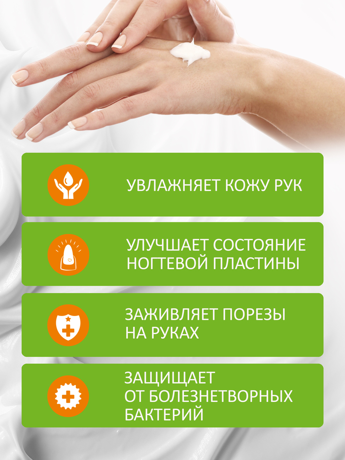 • Питательные компоненты: Содержит натуральные экстракты, которые питают и восстанавливают кожу рук.