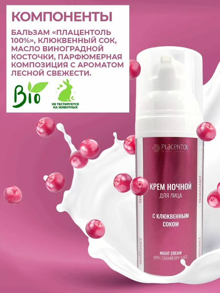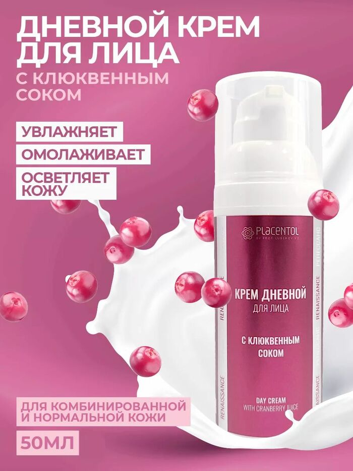 Крем дневной для лица с клюквенным соком (Плацентоль), 50 мл — увлажняющий осветляющий смягчающий уход для кожи: поддерживает комфорт, помогает выровнять тон и делает кожу более гладкой.