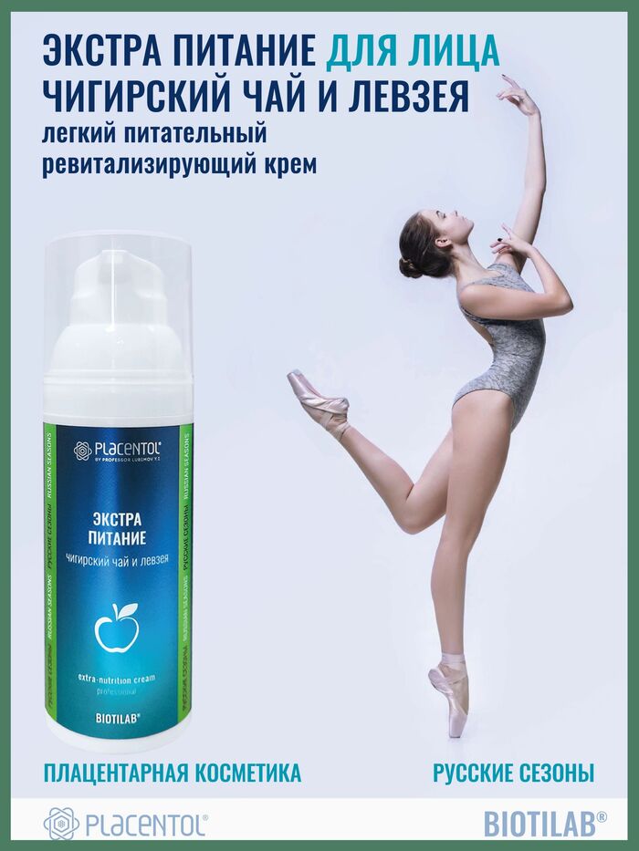Крем от бренда Плацентоль создан для ухода за кожей лица, шеи и декольте. Экстра питание на основе Чигирского чая и левзеи помогает коже выглядеть более свежей, увлажнённой и отдохнувшей, обеспечивая комплексный антивозрастной и тонизирующий эффект. Объём: 50 мл.
