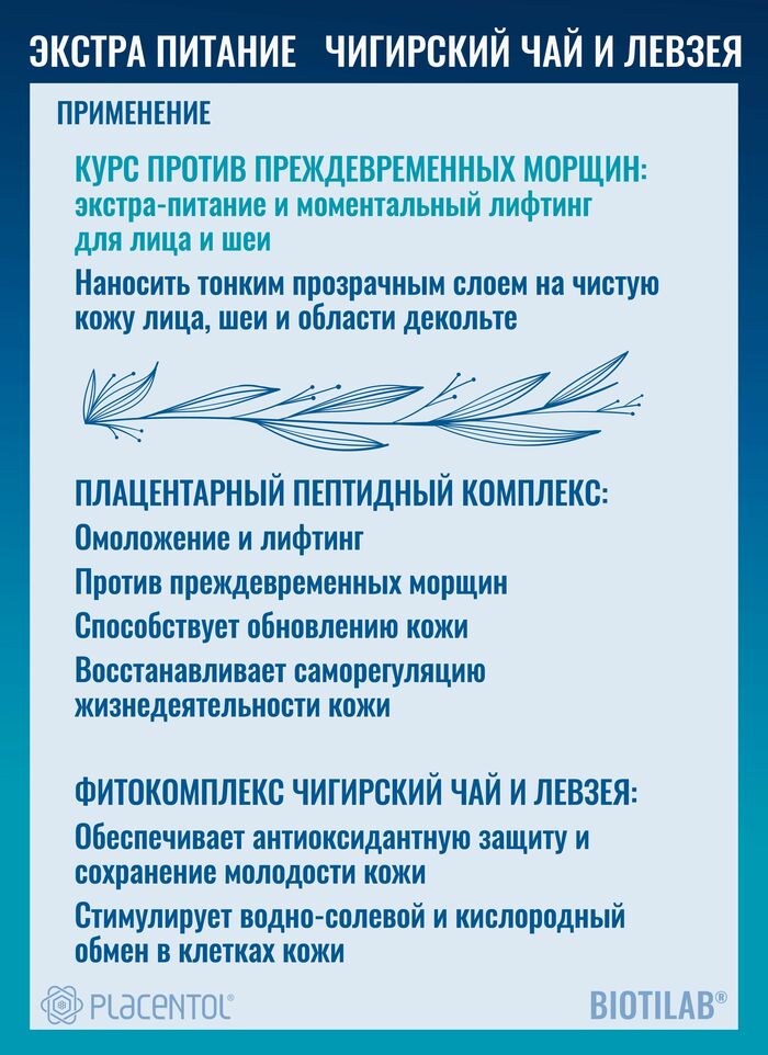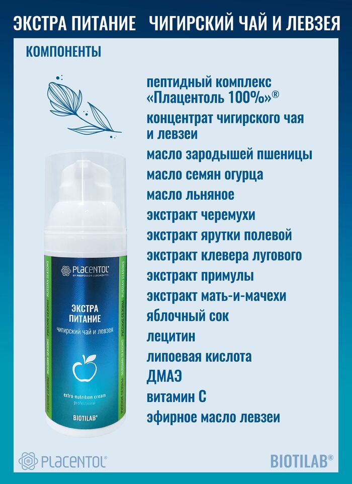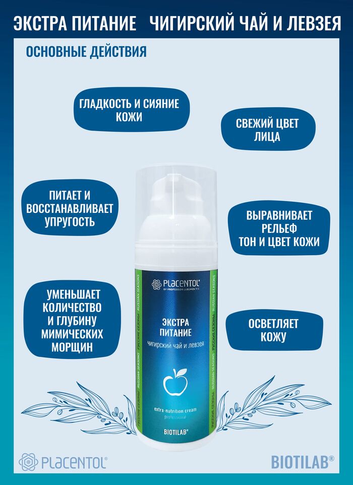 Плацентоль Крем для лица, шеи и декольте Экстра питание Чигирский чай и левзея, 50 мл