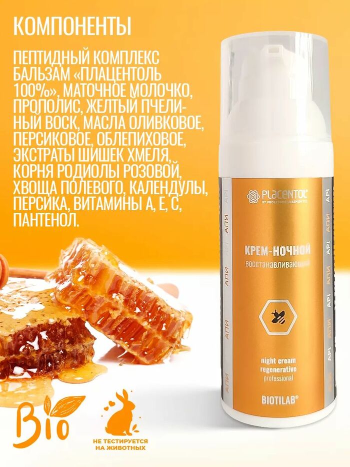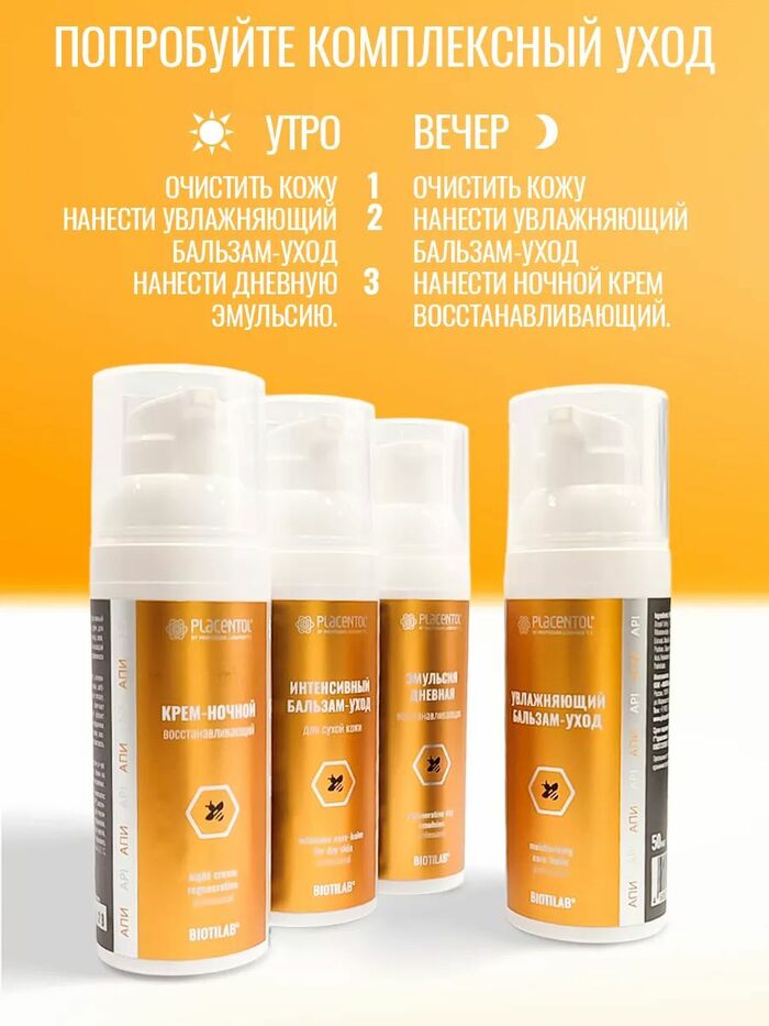 Крем-ночной восстанавливающий Placentol (Плацентоль) подходит для регулярного ночного ухода. Наносите на очищенную кожу лица и шеи тонким слоем, избегая области вокруг глаз. Идеально для использования при тусклости, ощущении стянутости и потребности в дополнительном уходе.