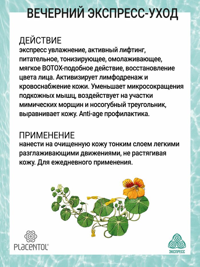 • Вечерний экспресс-формат: разработан для быстрого результата перед сном и комфортного ухода в течение ночи.