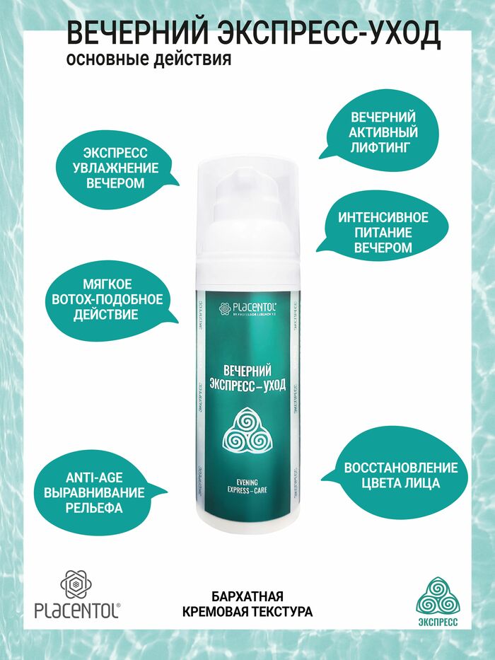 Крем Плацентоль Вечерний экспресс-уход, 50 мл — это увлажняющий тонизирующий уход, который помогает коже выглядеть более свежей, ровной и молодой уже вечером, поддерживая антивозрастной эффект.