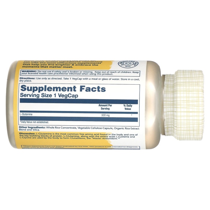 L-Глютамин Solaray 500 мг — это высококачественная добавка, содержащая 500 мг L-глютамина в каждой вегетарианской капсуле. В упаковке находится 50 капсул, что делает продукт удобным для длительного использования.