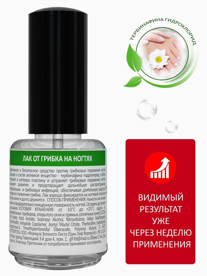 Лак от грибка ногтей от бренда GREEN LEAF FORMULA — это эффективное средство для борьбы с грибковыми инфекциями на ногтях. Объем флакона составляет 17 мл, что обеспечивает длительное использование и удобство в применении.