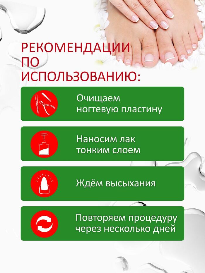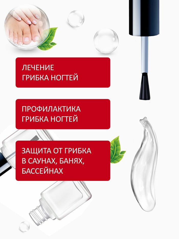 • Быстрое действие: Лак проникает в структуру ногтя, обеспечивая быстрое устранение грибка.