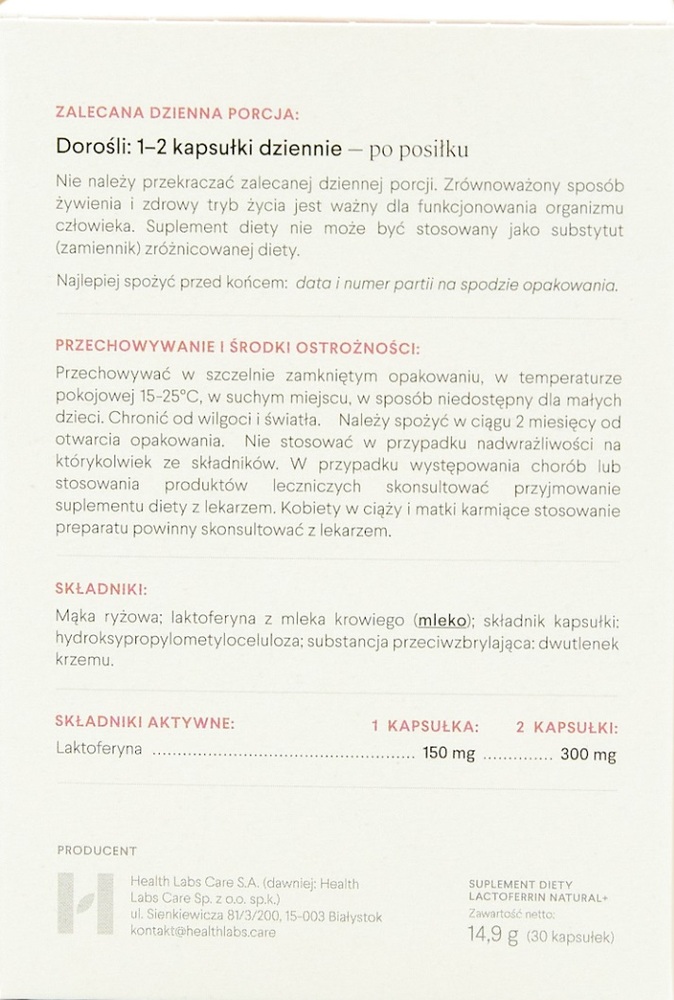 Health Labs Care Лактоферрин+ (150 мг), 30 капсул