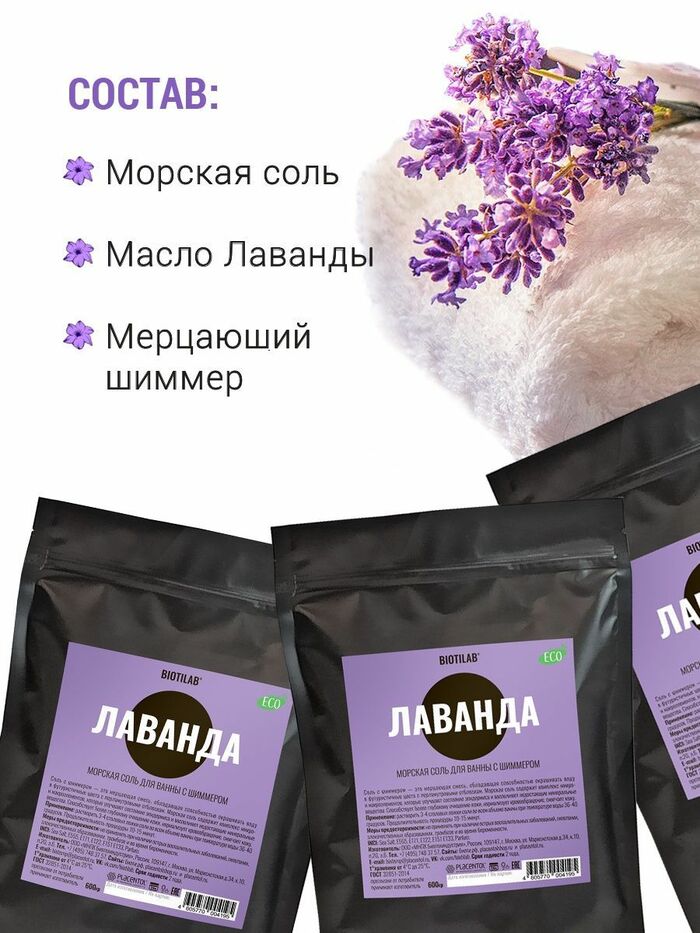 BIOTILAB Соль для ванн Лаванда, 600 г