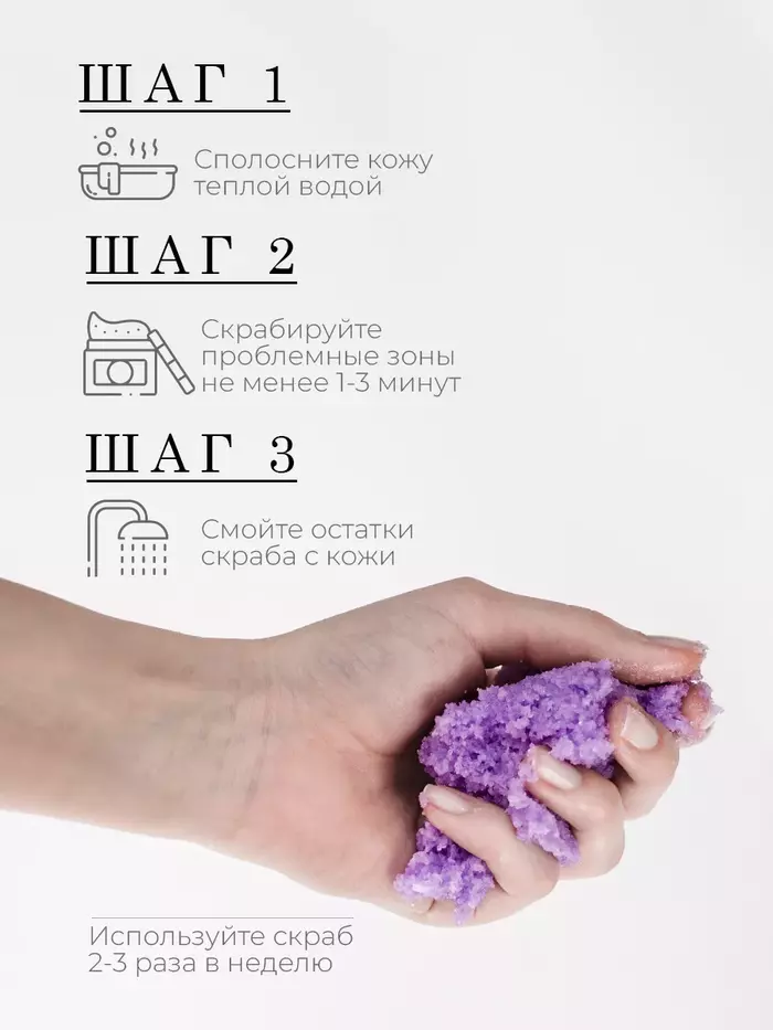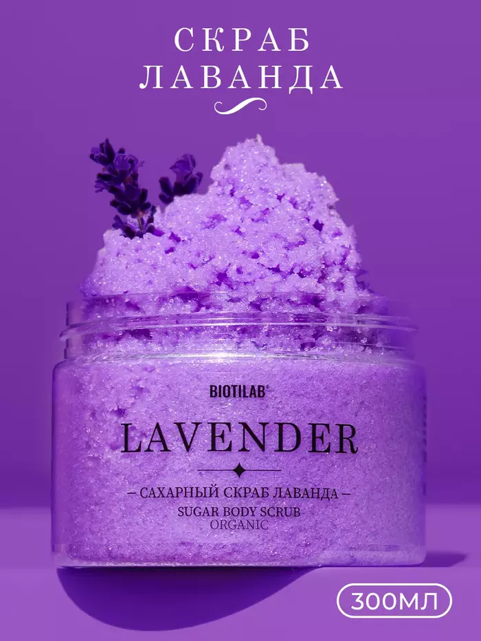 • Натуральные компоненты: Формула скраба обогащена экстрактами лаванды, которые успокаивают и расслабляют.