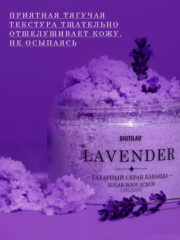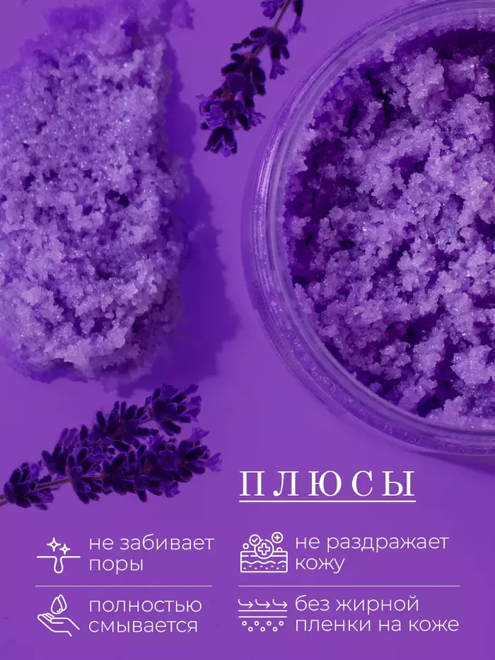 Скраб имеет нежную текстуру и легко наносится на кожу. Он идеально подходит для использования в домашних условиях, а также в качестве спа-процедуры. Lavender - Увлажняющий сахарный скраб для тела поможет вам создать атмосферу уюта и заботы о себе.