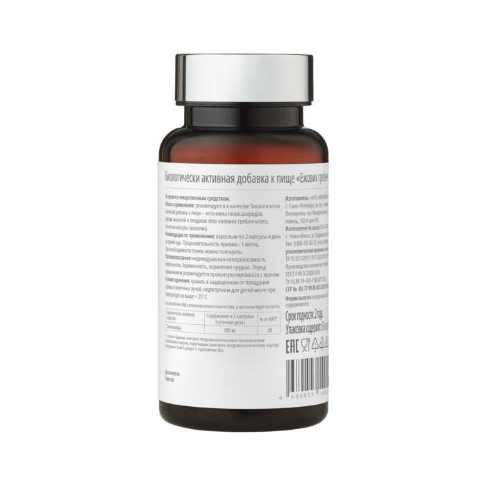 Ежовик гребенчатый — мощный ноотроп, который не только «прокачивает» мозг, но и успокаивает нервную систему. Основные компоненты (содержание в 2 капсулах):Полисахариды — 700 мг.
