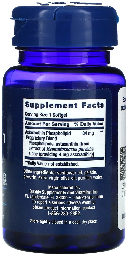 Life Extension Астаксантин с фосфолипидами (4 мг), 30 капсул