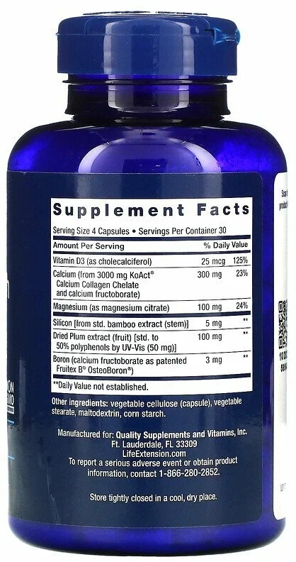 Формула коллагена для укрепления костей содержит запатентованный состав кальция и коллагена, который помогает поддерживать оптимальное здоровье костей, способствует прочности и гибкости костей и помогает поддерживать здоровую минеральную плотность костей. Кремний из экстракта бамбука и экстрактов сушеной сливы содержит дополнительные минералы для поддержания здоровья костей.