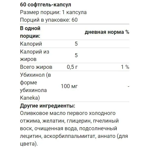 Каждая капсула Life Extension Супер Убихинол содержит 50 мг убихинола, что позволяет дозировать продукт в зависимости от индивидуальных потребностей. В упаковке 30 мягких капсул, что делает ее удобной для использования в течение месяца. Продукт не содержит искусственных красителей, ароматизаторов и консервантов, что делает его безопасным для ежедневного применения.