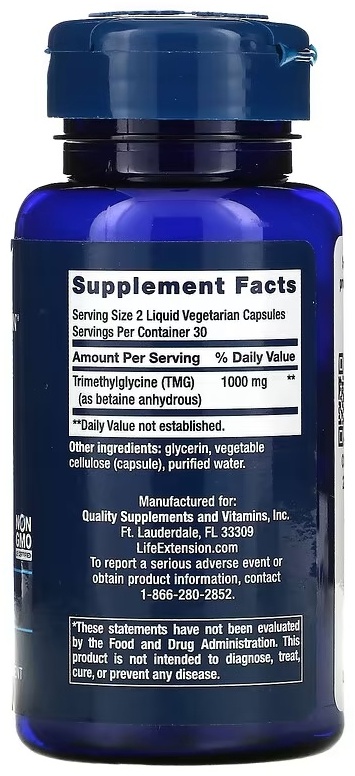 Life Extension Триметилглицин (500 мг), 60 капсул