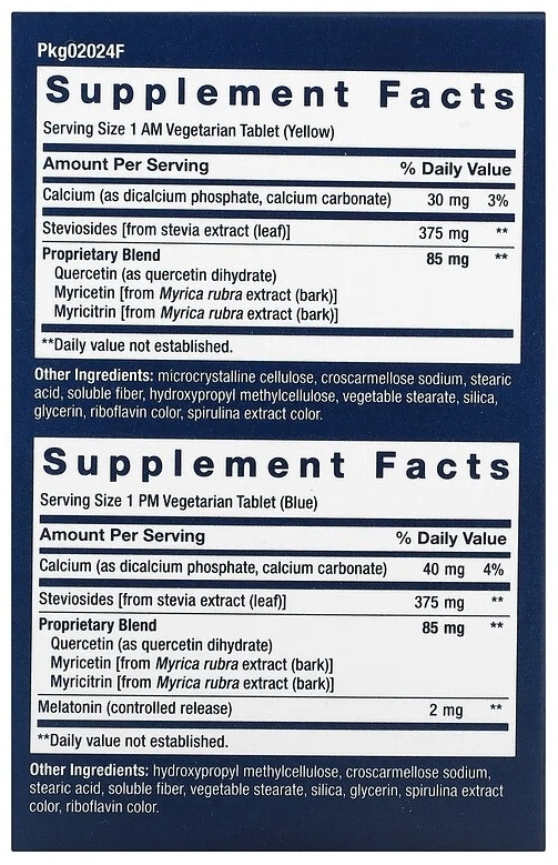 Принимайте одну (1) таблетку утром и одну (1) таблетку вечером за 30–60 минут до сна, с едой или без нее, или по рекомендации врача.