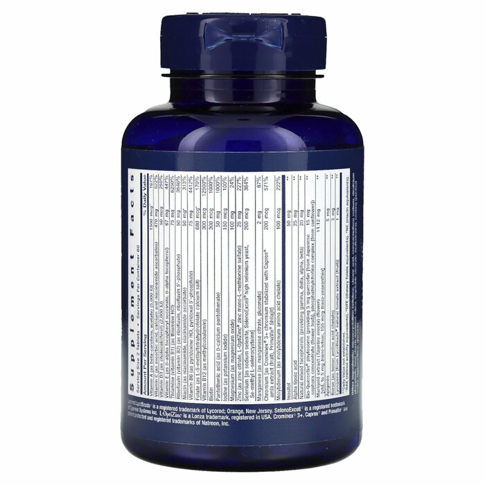 "Life Extension Мультивитамины Two-Per-Day Capsules" представляет собой комплексную пищевую добавку, разработанную для обеспечения организма полным спектром необходимых витаминов, минералов и других питательных веществ. Этот мультивитаминный комплекс содержит более 20 ценных питательных веществ, которые ежедневно требуются организму для поддержания оптимального здоровья и благополучия. Каждая порция (2 капсулы) включает значительные дозы витаминов и минералов, часто превышающие рекомендуемую суточную норму потребления.