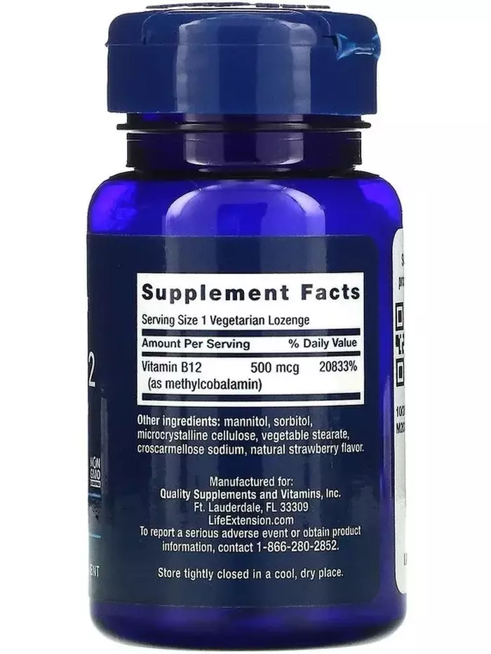 Life Extension Витамин B12 Methylcobalamin является витаминной добавкой, содержащей 500 мкг метилкобаламина, биологически активной формы витамина B12, в каждом леденце. Метилкобаламин играет критическую роль в поддержании здоровья нервной системы, кроветворения и энергетического метаболизма. Этот витамин необходим для синтеза ДНК, производства красных кровяных телец и поддержания нормальных уровней гомоцистеина, который является маркером сердечно-сосудистого, неврологического и общего здоровья.