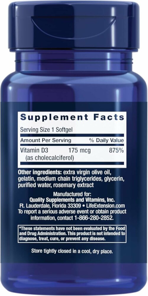 Life Extension Витамин Д3 (175 мкг/7000 IU) представляет собой высокодозированную добавку витамина D3 в форме холекальциферола. Каждая мягкая капсула содержит 175 мкг (7000 МЕ) витамина D3, что обеспечивает эффективное восполнение дефицита этого важного нутриента. Витамин D3 играет ключевую роль в поддержании здоровья костей и зубов, способствуя усвоению кальция и фосфора организмом.