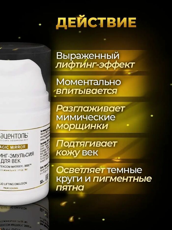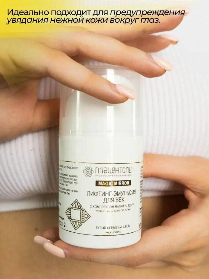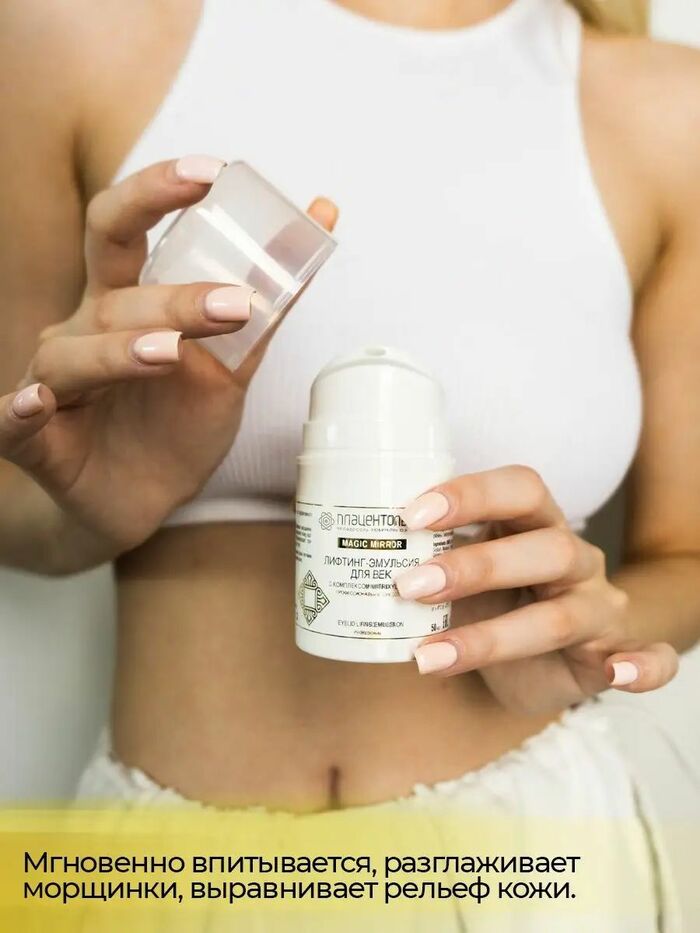 Лифтинг-эмульсия для век Плацентоль (50 мл) — укрепляющий, тонизирующий, осветляющий и омолаживающий уход, помогающий сделать кожу век более гладкой, упругой и свежей.