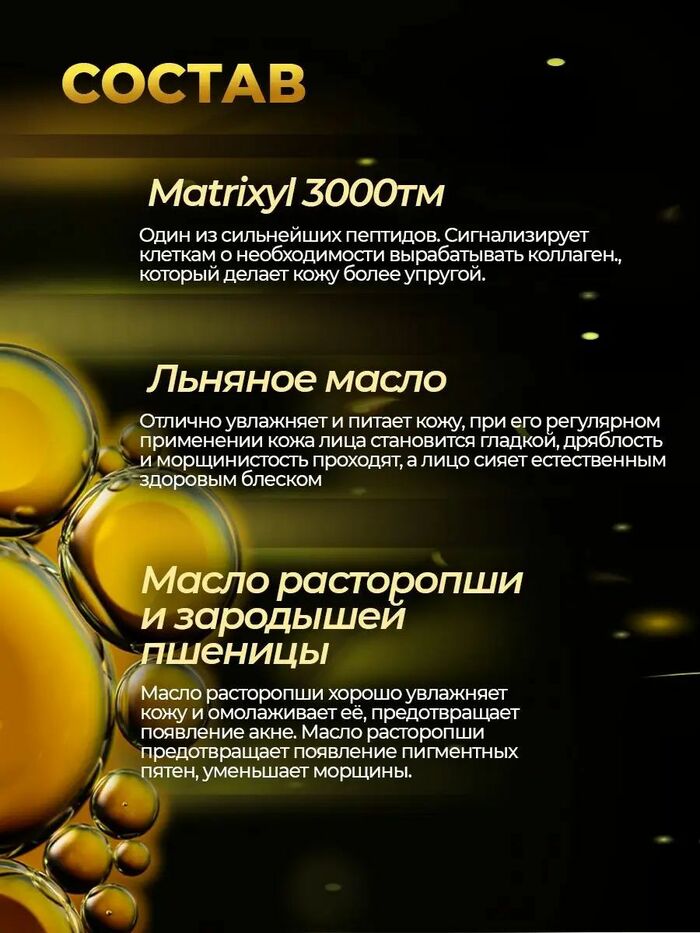 • Укрепление и лифтинг-эффект: формула поддерживает упругость кожи, помогая визуально уменьшать проявления возрастных изменений.