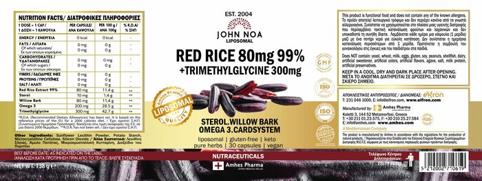 Липосомальный красный рис John Noa 80мг — это высококачественная добавка, которая поддерживает здоровье и нормализует уровень холестерина. В каждой упаковке содержится 30 растительных капсул, обеспечивающих удобство в использовании.