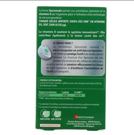 Капсулы Липосомального Витамина D Forte Pharma имеют высокую биодоступность благодаря липосомальной технологии, что делает их особенно эффективными. Продукт подходит для ежедневного использования и может быть включен в рацион в любое время года.