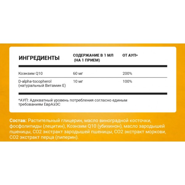• Энергетическая поддержка: Коэнзим Q10 способствует выработке энергии в клетках, что помогает поддерживать активность на протяжении всего дня.