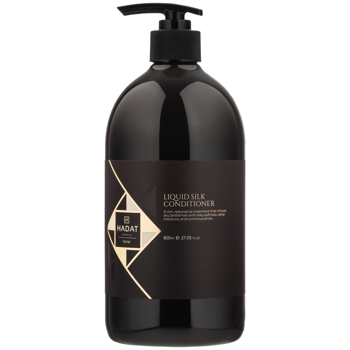 Кондиционер "Жидкий шелк" от Hadat Cosmetics — идеальное средство для восстановления и ухода за сухими и поврежденными волосами. Объем 800 мл обеспечивает длительное использование и экономичность.
