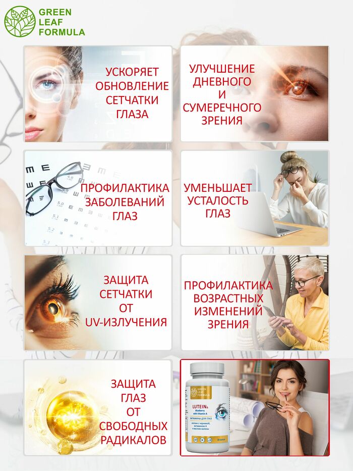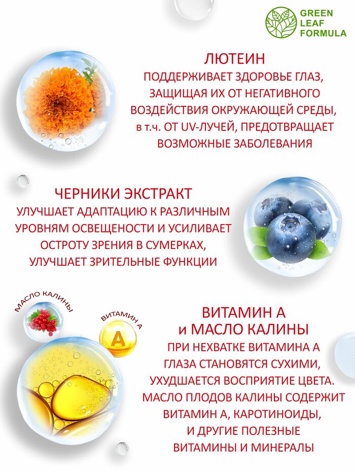 Лютеин витамины для зрения от бренда GREEN LEAF FORMULA — это идеальное решение для поддержания здоровья ваших глаз. В каждой упаковке содержится 30 капсул, которые обеспечивают ваш организм необходимыми веществами для поддержания остроты зрения.