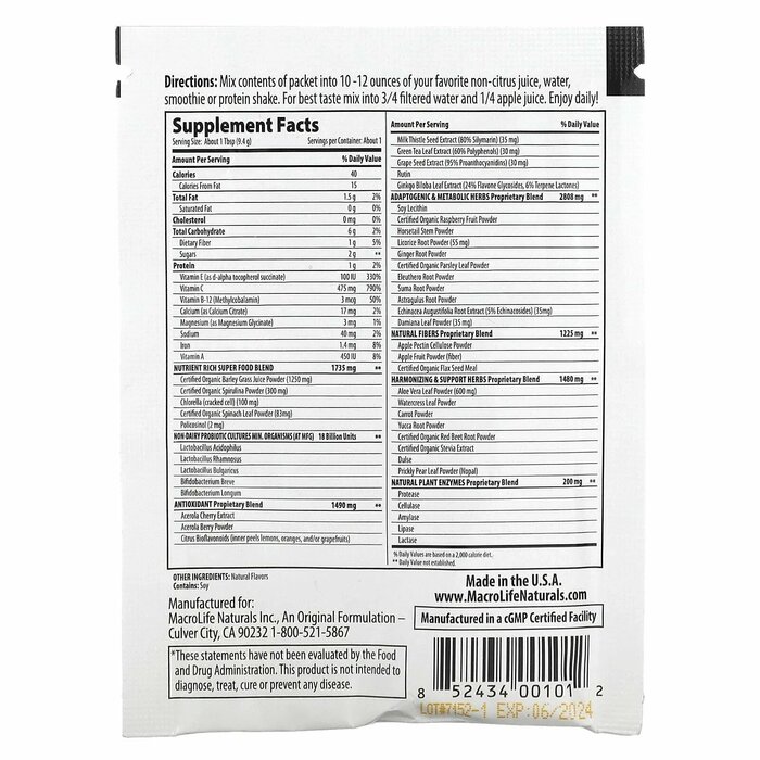 Macrolife Naturals Суперфуды Macro Greens, 9,4 г