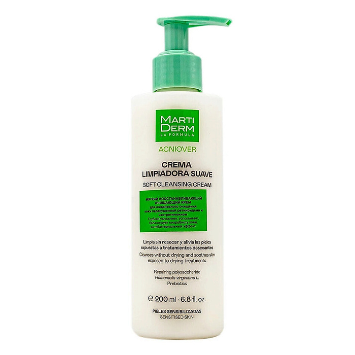 Мягкий очищающий крем от прыщей Martiderm ACNIOVER Crema Limpiadora Suave 200 мл — это идеальное средство для бережного очищения кожи, склонной к акне. Он эффективно удаляет загрязнения и излишки себума, не пересушивая кожу.