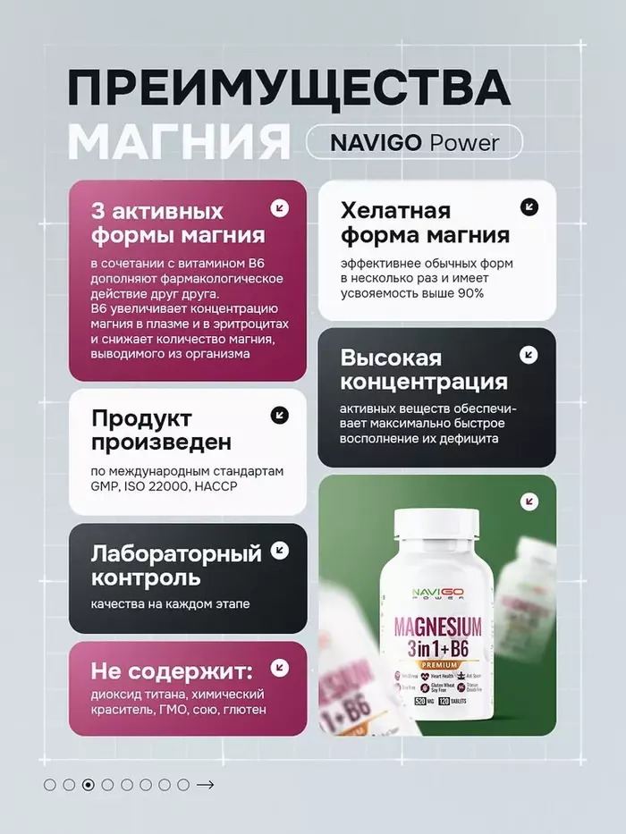 Магний хелат 3 в 1 + B6 от NAVIGO POWER — это высококачественная добавка, которая поддерживает нормальное функционирование организма. В каждой упаковке содержится 120 таблеток, обеспечивающих оптимальное усвоение магния и витамина B6.