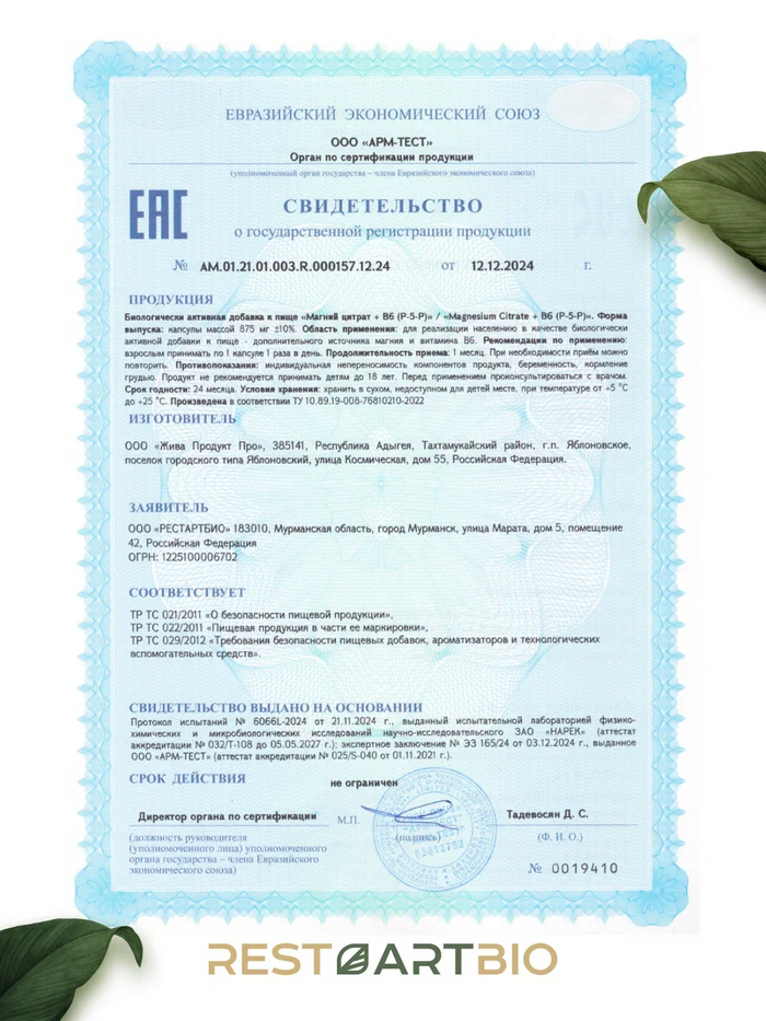 Магний цитрат (650 мг) + витамин В6 (р-5-р) от бренда RestartBio — это высококачественная добавка, которая поддерживает нормальное функционирование организма. В каждой упаковке содержится 120 капсул, обеспечивающих оптимальное количество магния и витамина В6 для вашего здоровья.