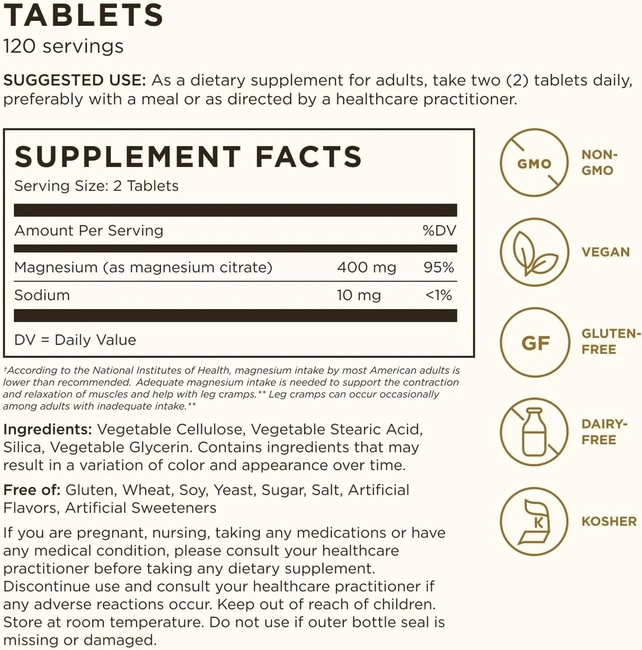 Таблетки магния цитрата Solgar легко проглатываются и не содержат искусственных добавок. Они подходят для вегетарианцев и могут быть использованы в качестве дополнения к сбалансированному питанию.