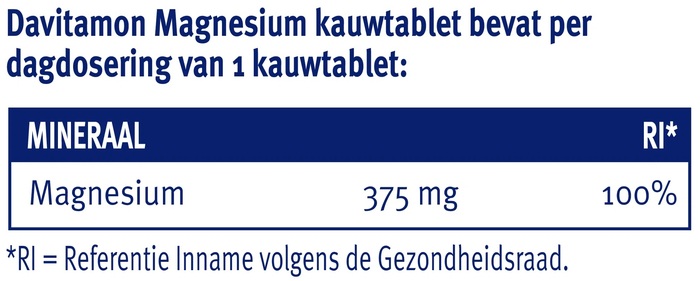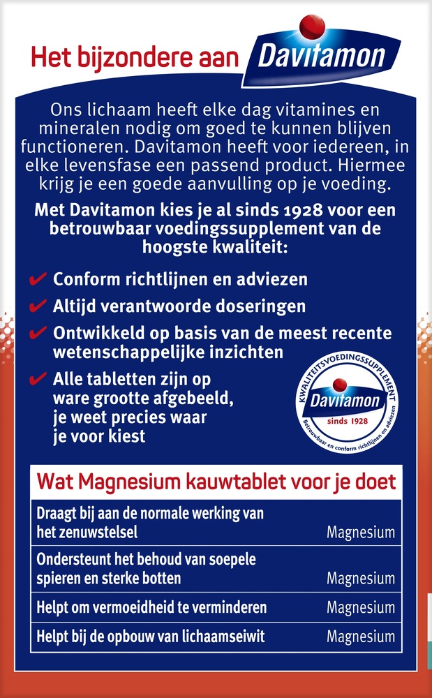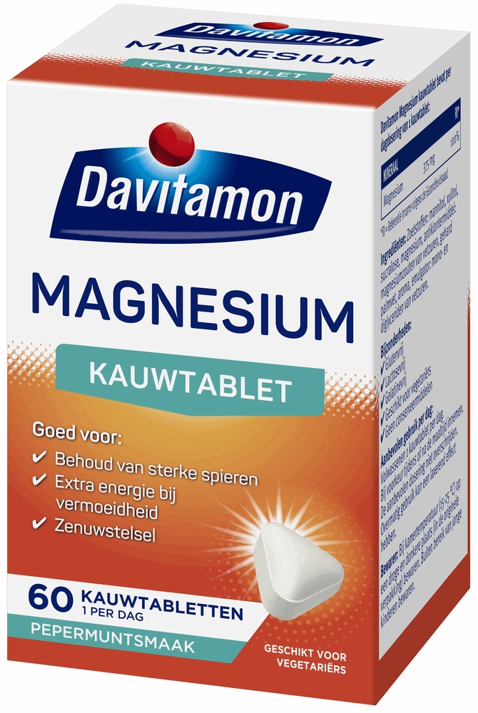 Магний Davitamon Magnesium в жевательных таблетках — это отличный способ поддержать уровень магния в организме. В каждой упаковке содержится 60 жевательных таблеток с приятным вкусом, которые помогут вам обеспечить необходимую дозу магния.