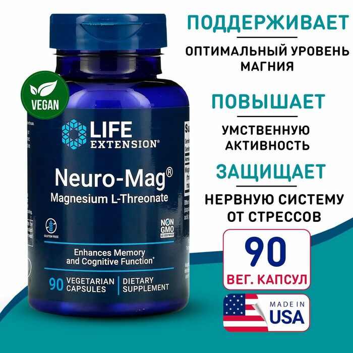 Life Extension Магний L-Треонат, 90 капсул