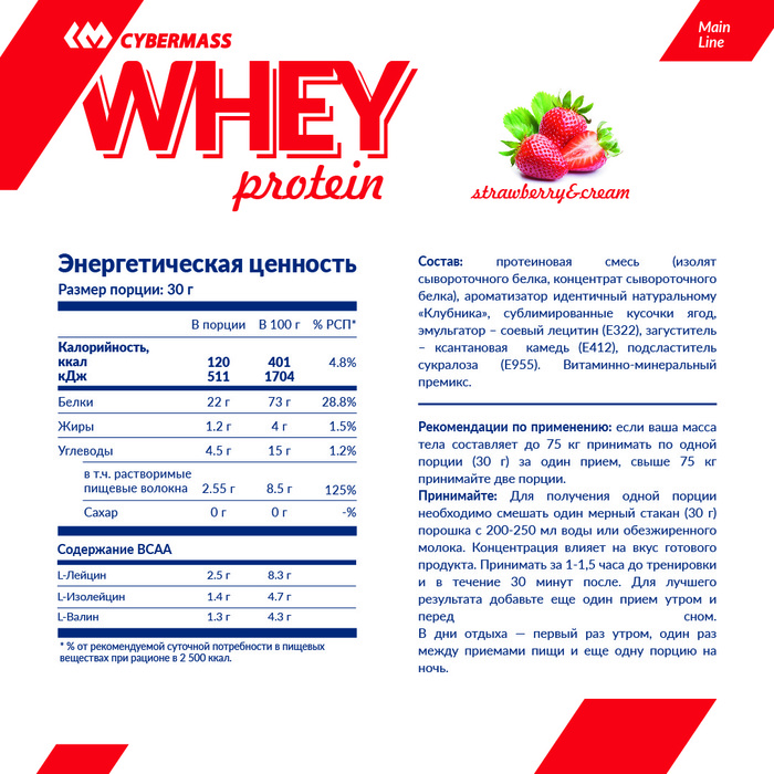 CyberMass Сывороточный протеин Whey Малина-Сливки, 908 г