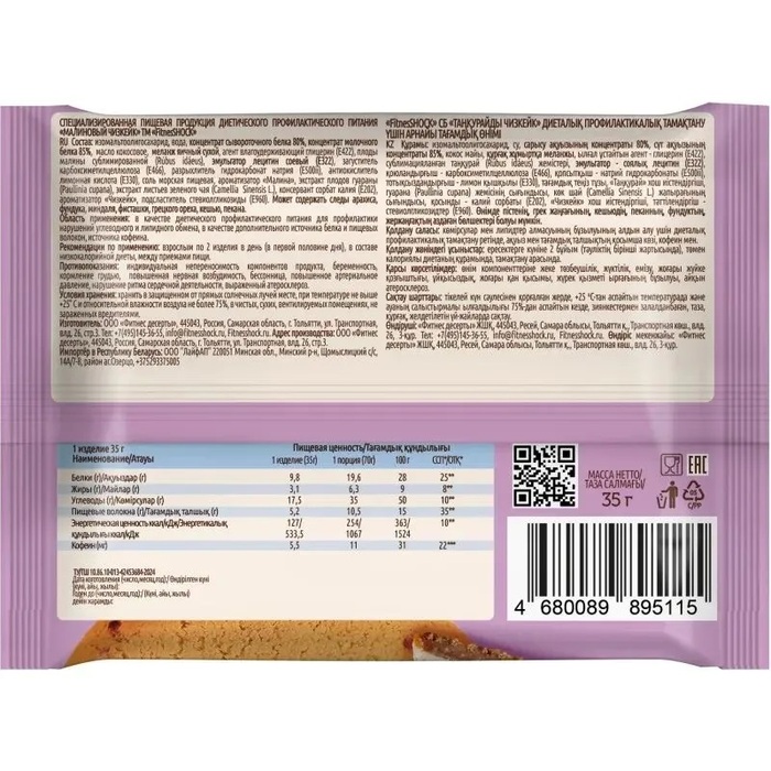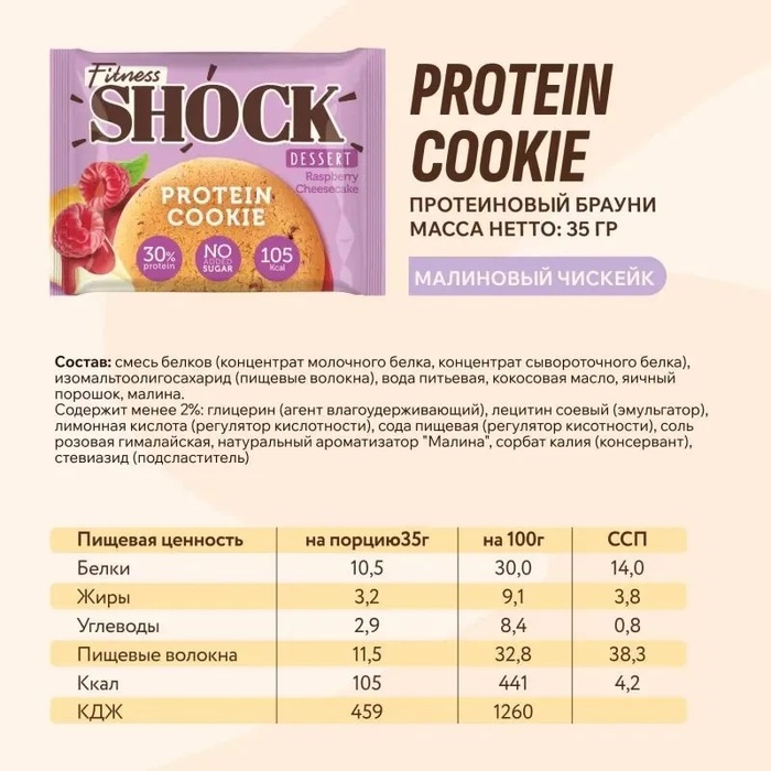 FitnesSHOCK Печенье протеиновое DESERT Малиновый чизкейк, 35 г