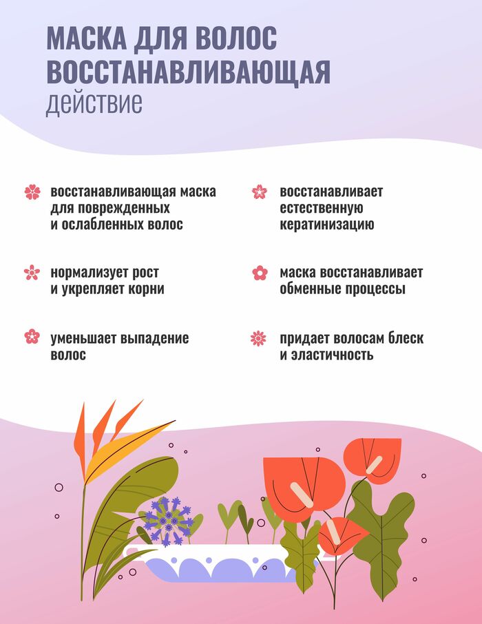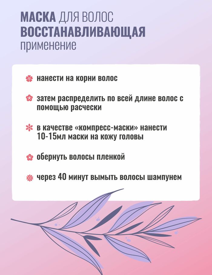 • Восстановление структуры: Маска помогает уменьшить ломкость и поддерживает естественную прочность волос.