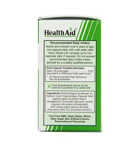 Капсулы масла чеснока Health Aid являются вегетарианскими и не содержат искусственных добавок, что делает их подходящими для широкого круга потребителей. Продукт легко включить в ежедневный рацион для поддержания здоровья.