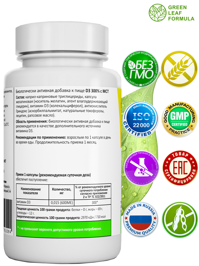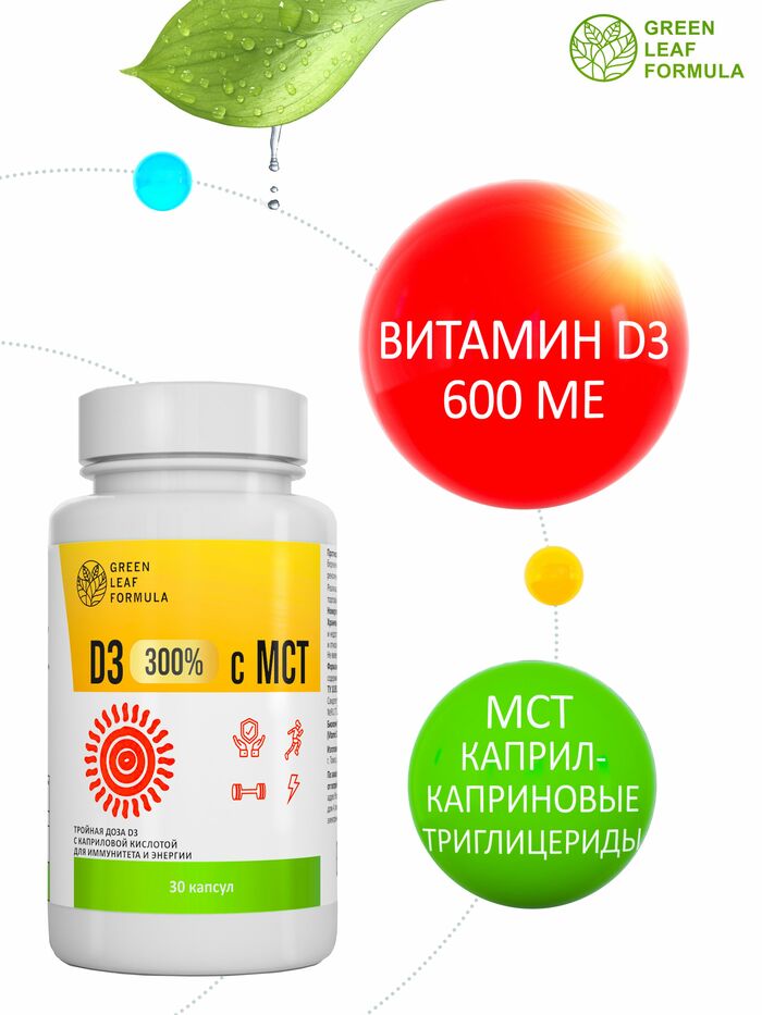 Масло МСТ с Витамином Д3 от бренда GREEN LEAF FORMULA — это идеальное решение для поддержания иммунитета и повышения уровня энергии. В каждой упаковке содержится 30 капсул, которые обеспечивают ваш организм необходимыми питательными веществами.