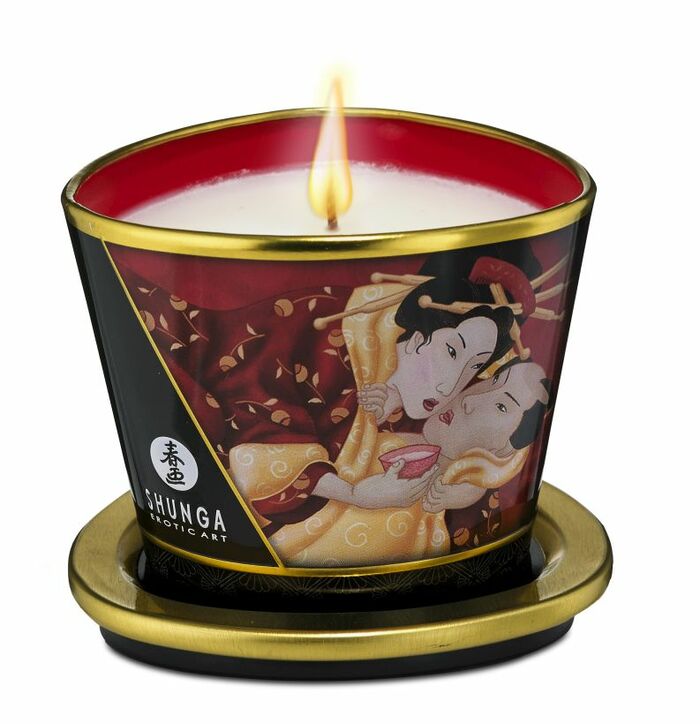 SHUNGA Массажное аромамасло в виде свечи, Sparrkling Strawberry Wine, Клубничное вино, 170 мл