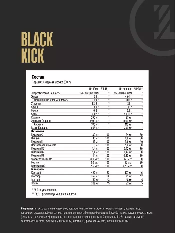 Энергетик Black Kick Вишня — это мощный источник энергии, который поможет вам справиться с физическими и умственными нагрузками. В каждой упаковке содержится 1000 г продукта, обогащенного кофеином и гуараной, что делает его идеальным выбором для активных людей.